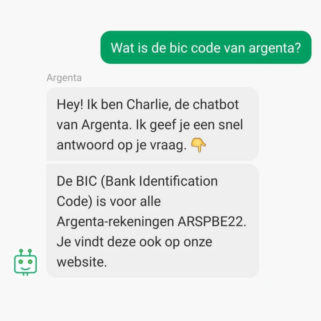 Argenta is known for its excellent customer service and wanted to ensure that customer satisfaction remained stable or improved when introducing the bot to its customers. With this specific challenge in mind, we introduced a few custom solutions that take Charlie from being a basic bot to a great bot.