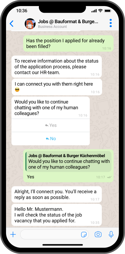This WhatsApp chatbot doesn’t just reduce the workload for the kitchen family’s HR team—it redefines how they engage with potential employees. By combining automation with personalized support, the chatbot makes the hiring process faster, more efficient, and far more engaging for everyone involved.
